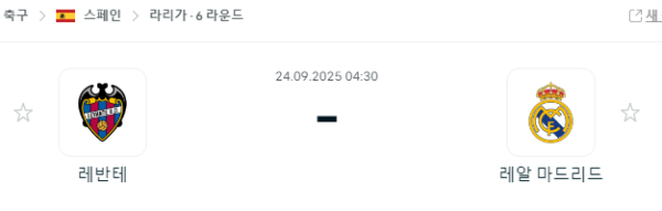 9월 24일 라리가, 레반테와 레알 마드리드의 격돌 중계 안내
