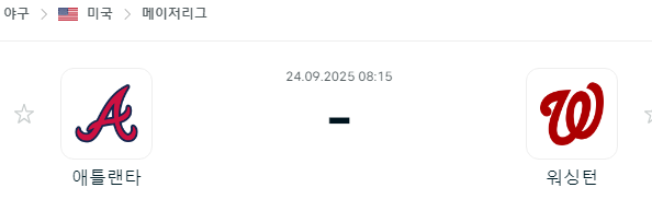 9월 24일 MLB 애틀랜타 브레이브스 vs 워싱턴 내셔널스 중계 일정