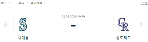 9월 26일 시애틀 콜로라도 맞대결 중계