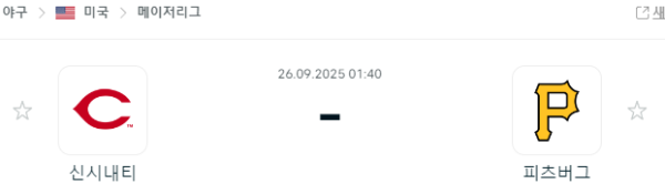 9월 26일 MLB 신시내티 레즈 vs 피츠버그 파이리츠 중계