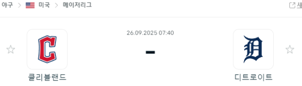 9월 26일 MLB 클리블랜드-디트로이트 맞대결 중계