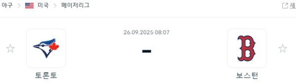 9월 26일 MLB 토론토 블루제이스 vs 보스턴 레드삭스 생중계