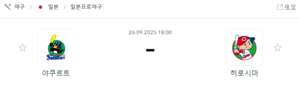 9월 26일 NPB 야쿠르트 히로시마 맞대결 라이브
