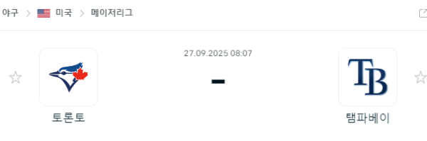 9월 27일 토론토 블루제이스와 탬파베이 레이스, MLB 빅매치 중계