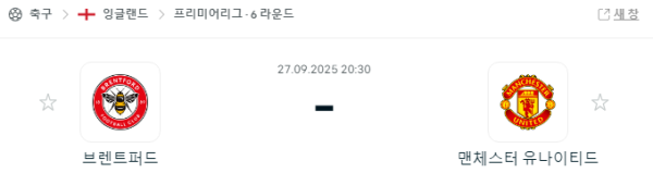 9월 27일 EPL 빅매치 브렌트퍼드-맨유 중계 안내