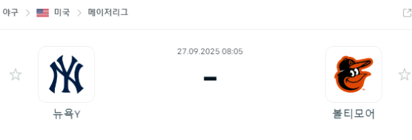 9월 27일 MLB 뉴욕 양키스 vs 볼티모어 오리올스 중계 안내
