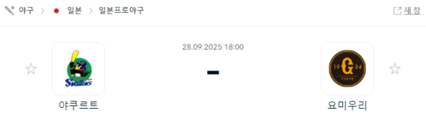 9월 28일 NPB – 전통의 라이벌전! 야쿠르트 vs 요미우리 무료중계