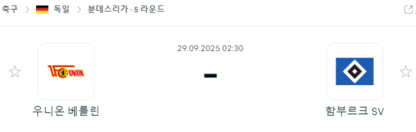 9월 29일 분데스리가 오늘의 경기: 우니온 vs 함부르크