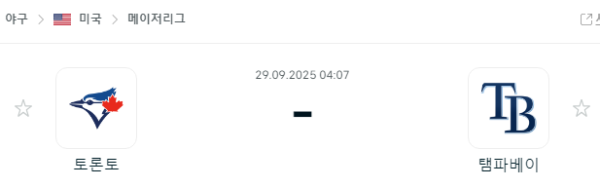 탬파베이 레이스 (이안 세이무어, 2025시즌 4승 2패 ERA 2.85 / 토론토 상대 1승 ERA 0.00)