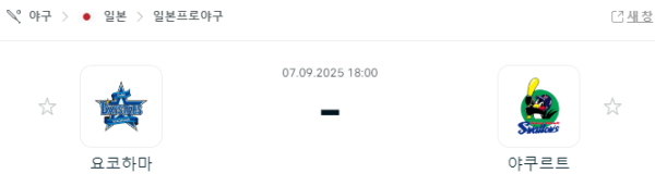 예상 스코어: 요코하마 4 - 3 야쿠르트