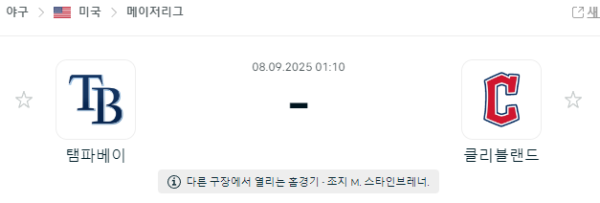 투수전 양상이 유력하다. 라스무센이 안정적으로 클리블랜드 타선을 제압할 가능성이 크며, 메시크는 불안 요소가 있지만 체인지업으로 대량 실점은 피할 수 있다. 경기 후반은 불펜 싸움으로 이어지고, 결국 초반 리드를 잡은 탬파베이가 승리를 지켜낼 가능성이 높다.