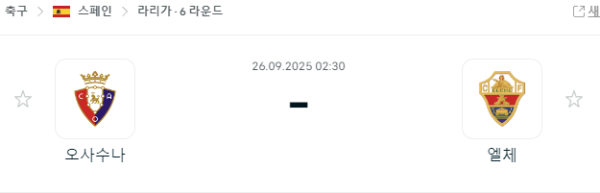 9.26 스페인 라리가: 오사수나와 엘체 맞대결