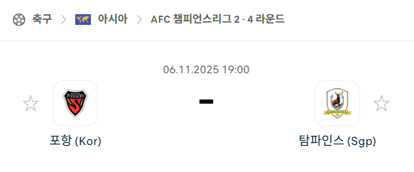 [AFC 아시아챔피언스리그2] 2025년11월6일 포항 스틸러스 vs 탐파인스 분석 중계
