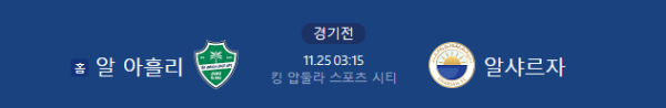 | 주요 매치업 | 알 샤르자가 알 아흘리의 막강한 공격진을 어떻게 효과적으로 제어하느냐가 승패의 가장 큰 분수령이 될 것입니다. 알 샤르자는 수비에서 실수를 줄여야 합니다. |