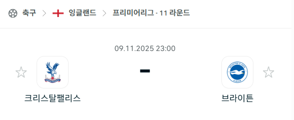 [EPL 프리미어리그] 2025년11월9일 크리스탈 팰리스 vs 브라이튼 분석 중계