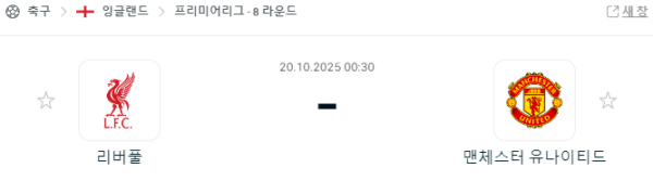 EPL 10월 20일 리버풀-맨체스터 유나이티드 중계 정보