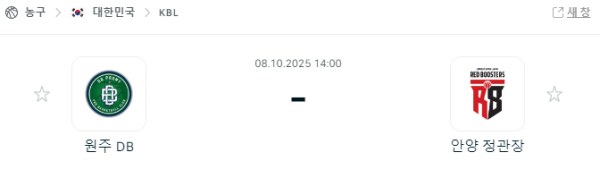 KBL 10월 8일 원주 DB-안양 정관장 경기 생중계 정보