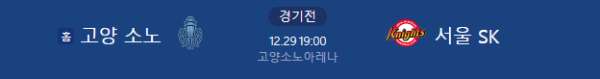 [KBL] 12월 29일 고양 소노 vs 서울 SK 분석