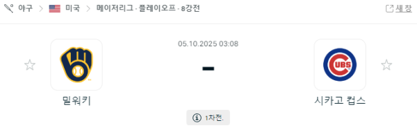 MLB 10월 5일 중계 – 밀워키 브루어스 vs 시카고 컵스