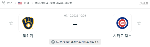 MLB 10월 7일 밀워키 브루어스 – 시카고 컵스 경기 실시간 중계
