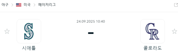 MLB 9월 24일 시애틀 매리너스 vs 콜로라도 록키스 경기 일정