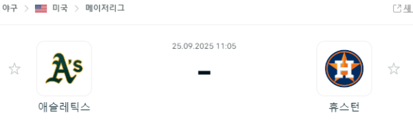 MLB 9월 25일 애슬레틱스-휴스턴 맞대결