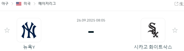 MLB 9월 26일 경기: 양키스 vs 화이트삭스 라이브