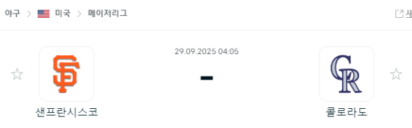 MLB 9월 29일 – 샌프란시스코 자이언츠 vs 콜로라도 로키스 중계