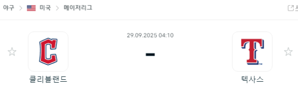 MLB 9월 29일 – 클리블랜드 가디언스 vs 텍사스 레인저스 중계