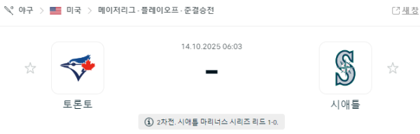 MLB ALCS 10월 14일 – 토론토 vs 시애틀 생중계 일정