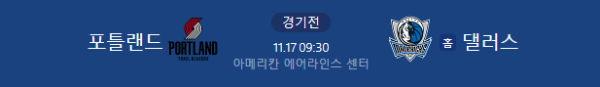 NBA 농구 포틀랜드 vs 댈러스 2025년 11월 17일 경기분석