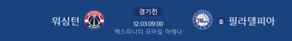 | 핵심 매치업 | 워싱턴의 수비가 조엘 엠비드를 얼마나 견제할 수 있을지가 가장 중요합니다. 워싱턴은 필라델피아의 에이스에게서 파울을 유도하고 빠른 트랜지션 공격을 통해 점수를 벌어야 합니다. |