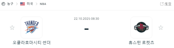 NBA 10월 22일 생중계 | OKC 썬더 vs 휴스턴 로케츠