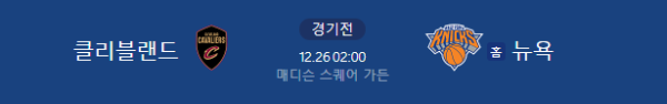 [NBA] 12월 26일 클리블랜드 vs 뉴욕 닉스 승부 분석
