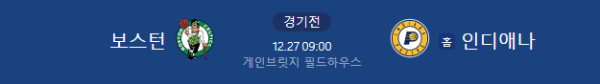 [NBA] 12월 27일 보스턴 셀틱스 vs 인디애나 페이서스 분석