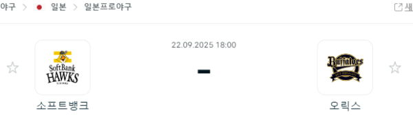 NPB 9월 22일 – 소프트뱅크 vs 오릭스 경기 중계
