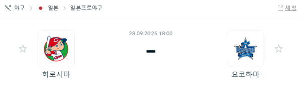 NPB 9월 28일: 히로시마 카프 vs 요코하마 베이스타즈 무료 시청하기