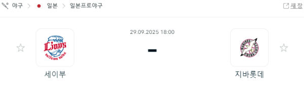 NPB 9월 29일 – 세이부 라이온스 vs 지바 롯데 마린즈 중계