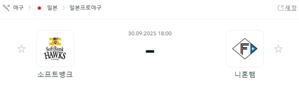 NPB 9월 30일 소프트뱅크-니혼햄 경기 생중계