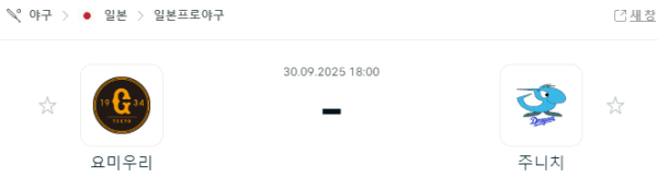 NPB 9월 30일: 요미우리 vs 주니치 경기 방송 정보