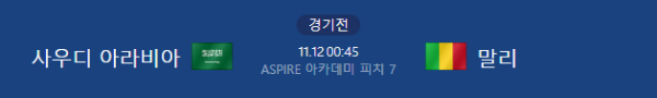 | 예상 스코어 | 말리 3 : 0 사우디 아라비아 | |