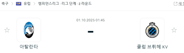 UCL 10월 1일 – 아탈란타 vs 클럽 브뤼헤 중계 안내