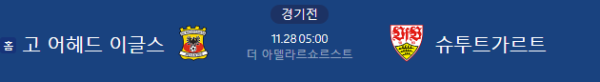 | 주요 매치업 | 슈투트가르트가 미드필드 장악력과 볼 점유율에서 우위를 보일 것입니다. 고 어헤드 이글스는 홈에서 관중의 응원을 등에 업고 슈투트가르트의 공격을 막아내고, 공간을 활용한 빠른 역습으로 승부를 봐야 합니다. |