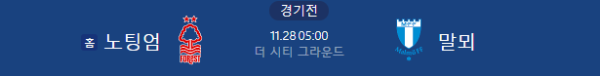 | 주요 매치업 | 노팅엄이 홈에서 볼을 지배하며 말뫼의 수비를 끊임없이 흔들 것입니다. 말뫼는 미드필더를 두텁게 배치하여 노팅엄의 공격을 차단하고, 빠른 역습이나 세트피스로 노팅엄 수비의 빈틈을 노리는 것이 중요합니다. |
