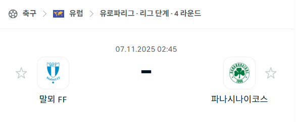 [UEFA 유로파리그] 2025년11월7일 말뫼 vs 파나시나이코스 분석 중계