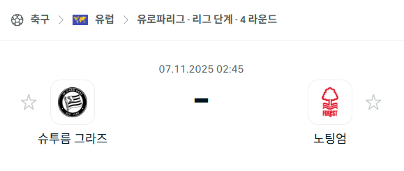 [UEFA 유로파리그] 2025년11월7일 슈투름 그라츠 vs 노팅엄 분석 중계