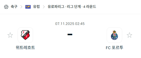 유럽 대항전 3연패의 부진을 겪고 있는 위트레흐트와, 최근 2연승으로 분위기를 반등시킨 포르투의 흐름이 대조되는 경기입니다.