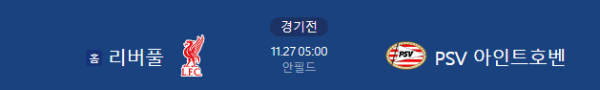 | 주요 매치업 | 리버풀의 풀백 (혹은 윙백)들이 PSV의 측면 수비 라인을 얼마나 무너뜨리고 크로스를 올릴 수 있는지가 관건입니다. 또한, PSV의 젊은 공격진이 리버풀의 수비진을 상대로 역습을 성공시킬 수 있는지가 승패를 가르는 변수가 될 것입니다. |
