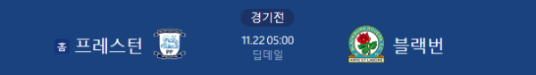 | 주요 매치업 | 프레스턴의 견고한 수비가 블랙번의 공격적인 선수들을 얼마나 막아낼 수 있는지가 관건입니다. 또한, 프레스턴이 홈에서 선제골을 넣어 경기를 유리하게 끌고 가는 것이 중요합니다. |