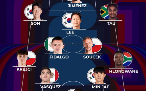 한국, 멕시코, 남아프리카공화국, 체코가 속한 A조에서 각 포지션별 최고의 선수들을 선정한 결과, 대한민국 대표팀의 핵심 3인방이 당당히 이름을 올렸다.가장 눈에 띄는 것은 단연 공격진이다. 왼쪽 측면 공격수 자리에는 대한민국 캡틴 손흥민(LAFC)이 배치됐다.